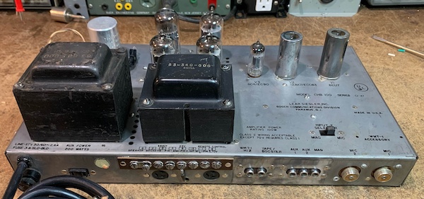 Upon testing of these tubes on my mutual conductance tester, it was found these were not very evenly matched. The Gm values measured had varied from 10 to 20%, but all were in the “good” range. The owner did not wish to spend the money on purchasing four new and matched 7868 tubes which are not common, and not in current production, therefore very, very, pricey. However, once the bias was set properly, this quad still put out a pretty clean 100 watts before clipping.