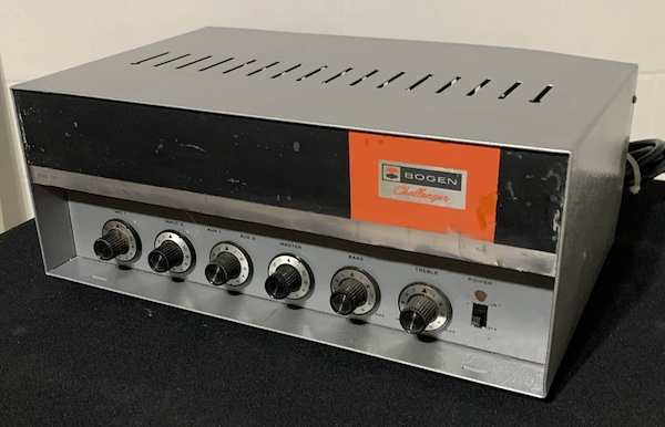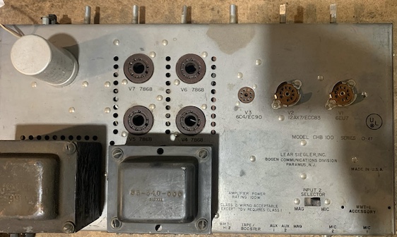 This was a very popular P.A. amplifier with fledgling bands of the 1960’s. One of my earliest bands used the CHB50, 50 watt version of this 100 watt amp, along with a battery-operated cheap Japanese 4-channel mixer. You know, the gold ones.