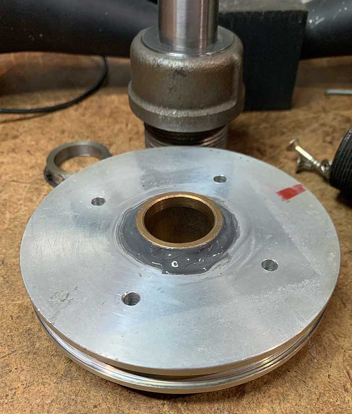 The rotating horn drive wheel had a very loose sleeve bearing. The only way to secure it properly was with a good quality epoxy.